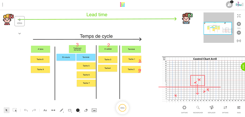 - De la présentation sur un tableau blanc, soit en partant d’un tableau blanc, soit en préparant quelques éléments de bases et en les ajoutant au fur et à mesure. Bonus les étudiants peuvent participer eux aussi, cela à notamment très bien fonctionné lorsque nous avons fait une storymap tous ensemble !